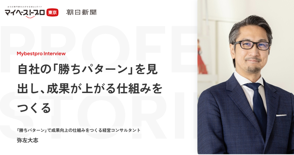 弊社代表の弥左大志(やさ だいし)は、このたび、朝日新聞社が運営する専門家紹介サイト「マイベストプロ東京」において、経営コンサルティング分野の専門家として掲載されました。